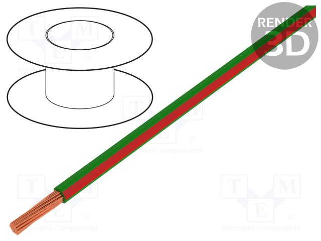 Провод; LgY; многопров; Cu; 0,5мм2; зелено-красный; ПВХ; 300/500В