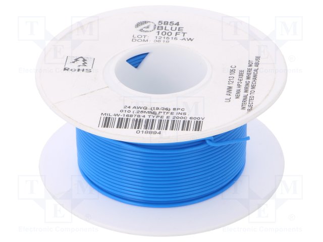 Провод; UL AWM 1213; многопров; Cu; 24AWG; синий; PTFE; 600В; 30,5м |