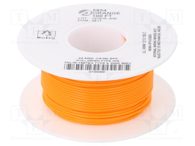 Провод; UL AWM 1213; многопров; Cu; 24AWG; оранжевый; PTFE; 600В |