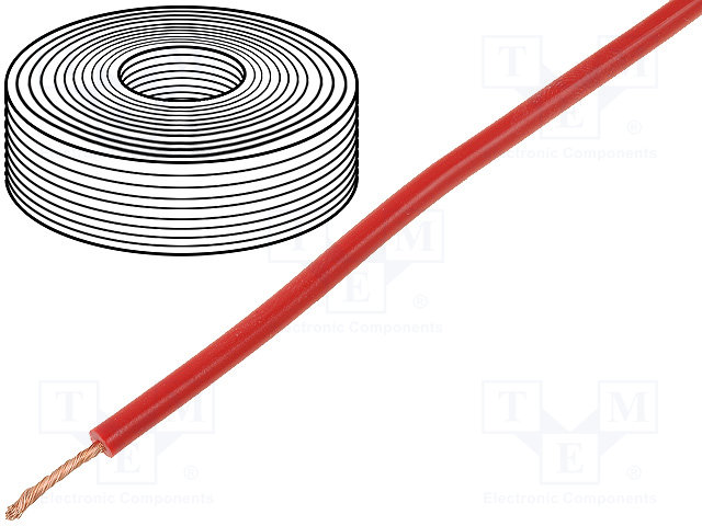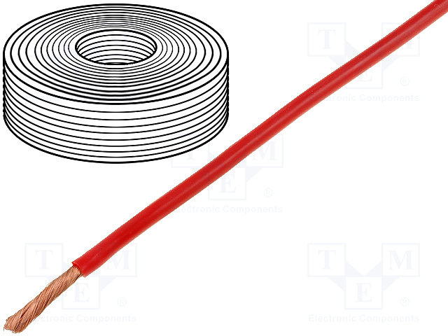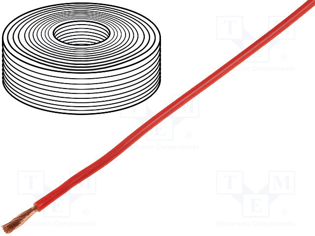 Провод; многопров; Cu; 1x0,25мм2; ПВХ; красный; 100В; -10÷85°C; 50м |