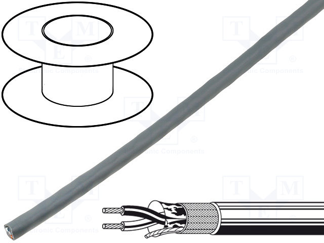 Провод; RS232; 2x2x24AWG; многопров; Cu; фольга Al-PET; ПВХ; серый |