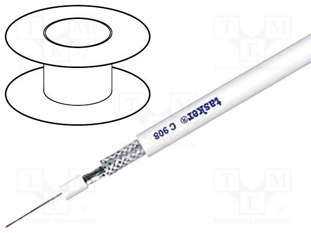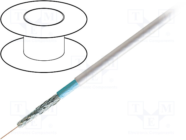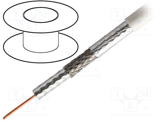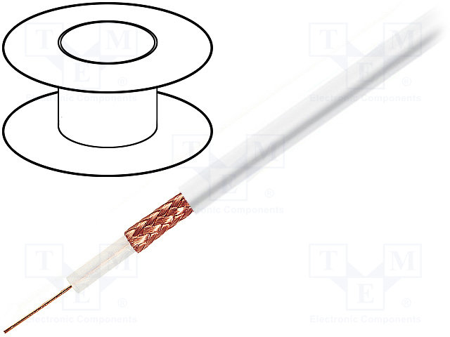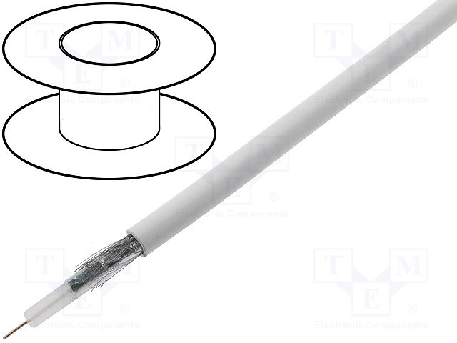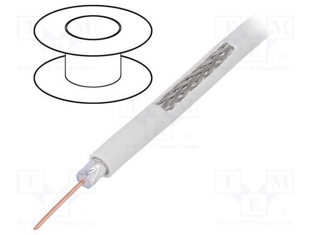 Провод: коаксиальный; RG6,H126; 1x50Ом; однопров; Cu; ПВХ; белый |