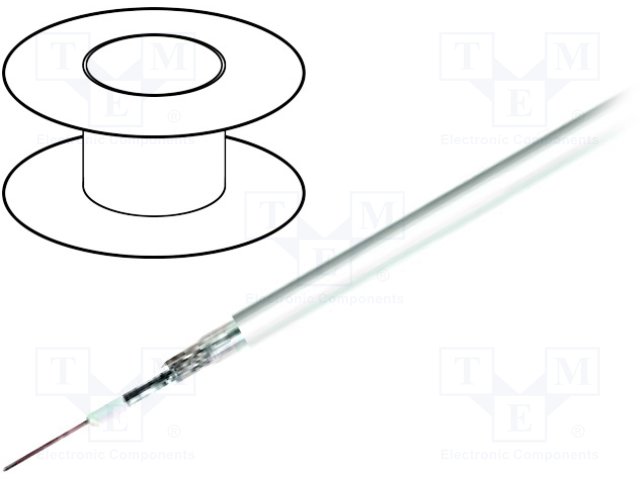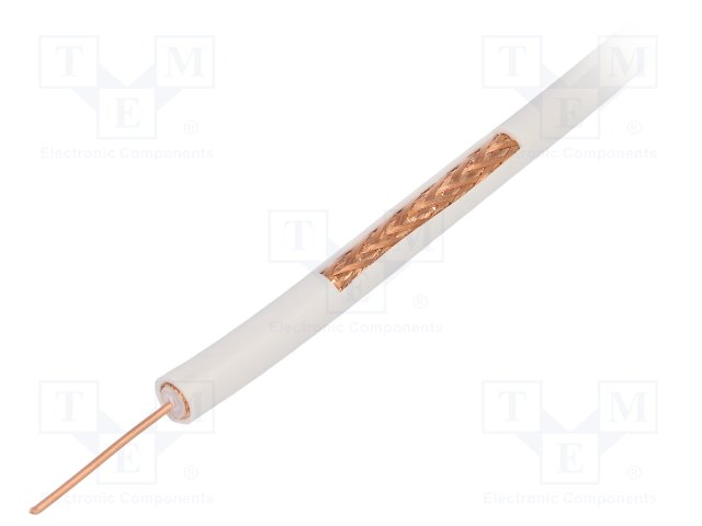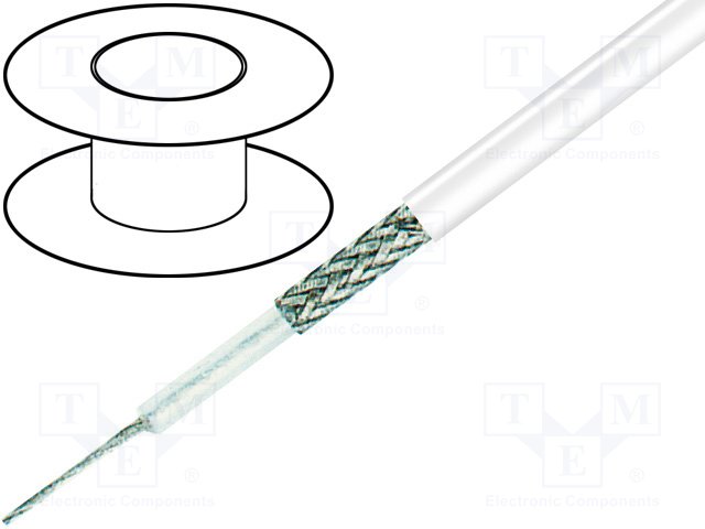 Провод: коаксиальный; RG59BU-F; 1x75Ом; однопров; Cu; ПВХ; белый |