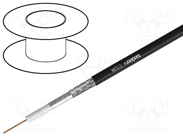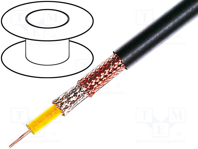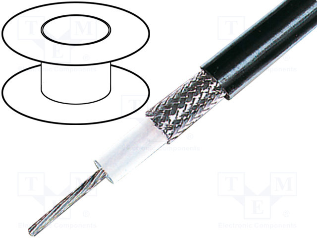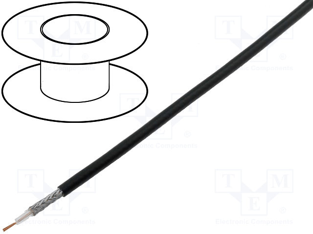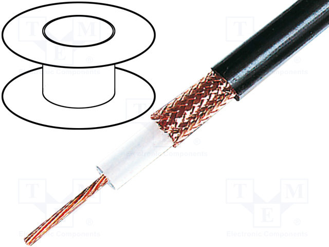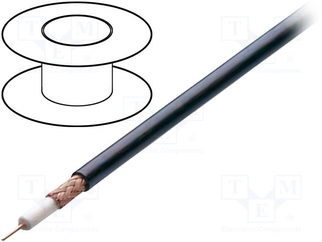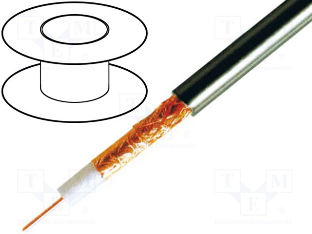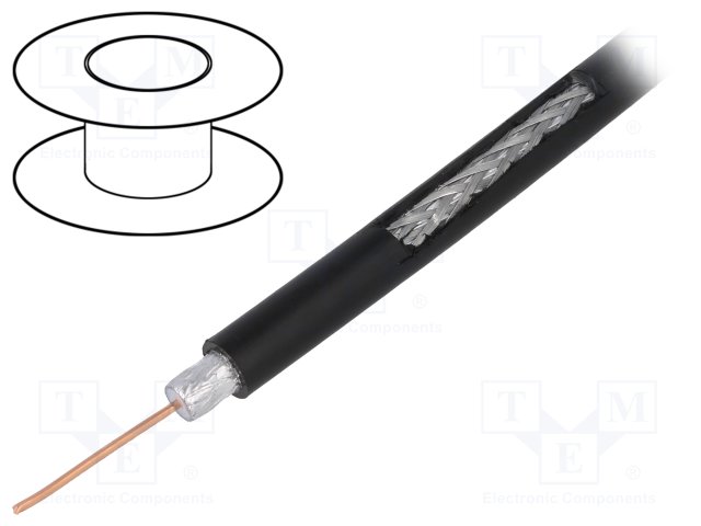 Провод: коаксиальный; однопров; CCS; ПВХ; черный; 100м; Ø6,15мм |