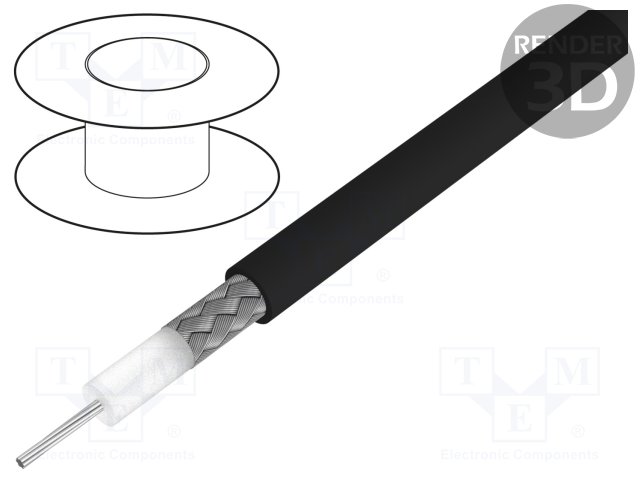 Провод: коаксиальный; H1000; 1x50Ом; однопров; Cu; PE; черный |