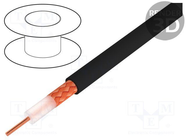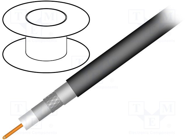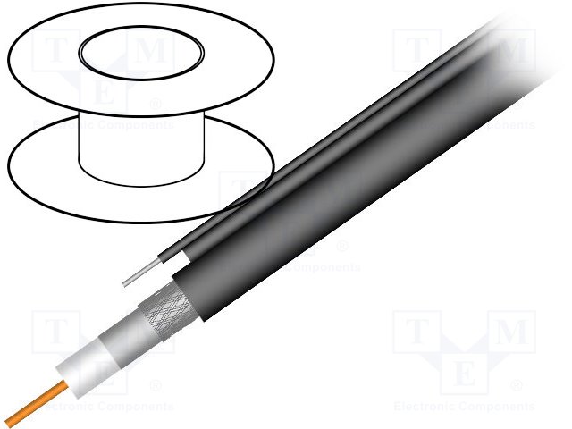 Провод: коаксиальный; RG11; 1x75Ом; однопров; Cu; PE; черный; 305м |
