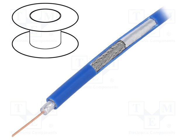 Провод: коаксиальный; RG59; 1x75Ом; однопров; Cu; ПВХ; синий; 100м |