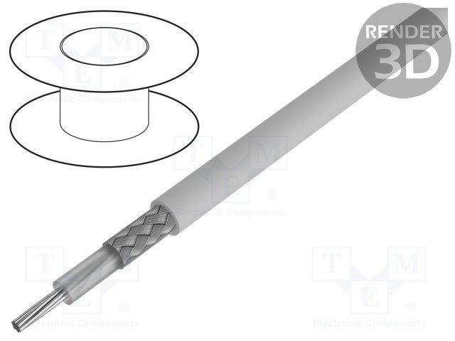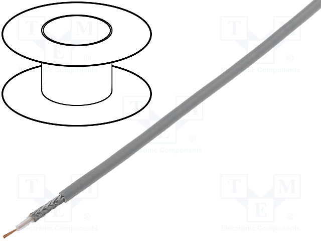 Провод: коаксиальный; RG174; 1x50Ом; однопров; Cu; 25AWG; ПВХ; серый |