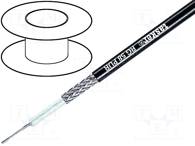 Провод: коаксиальный; RG58; 1x50Ом; многопров; OFC; PUR; черный |