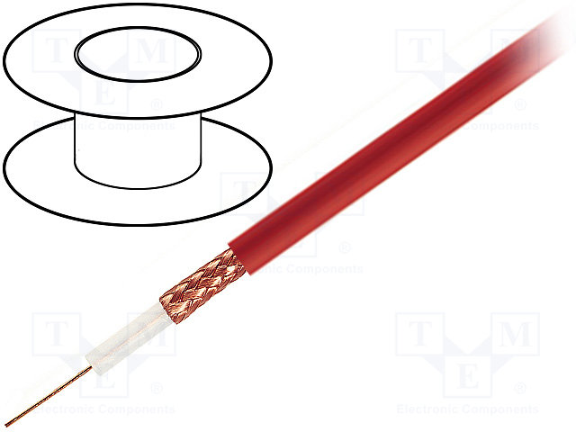 Провод: коаксиальный; RG59; 1x75Ом; однопров; Cu; ПВХ; красный; 100м |