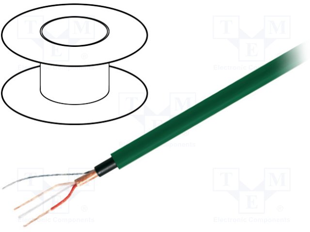 Провод: микрофонный; 2x0,25мм2; зеленый; OFC; ПВХ; -15÷70°C; 100м