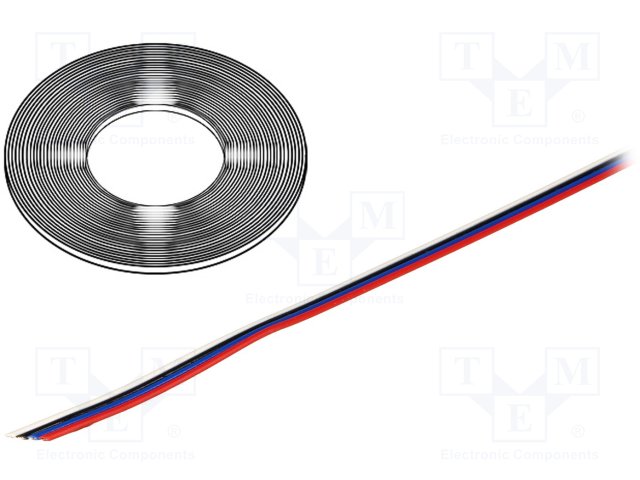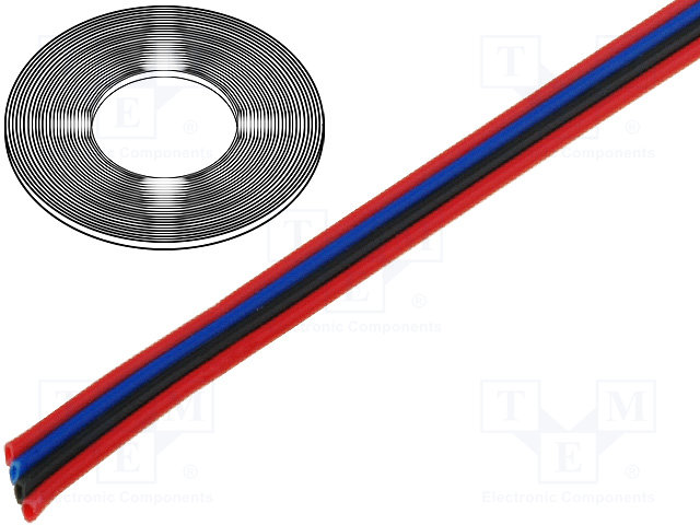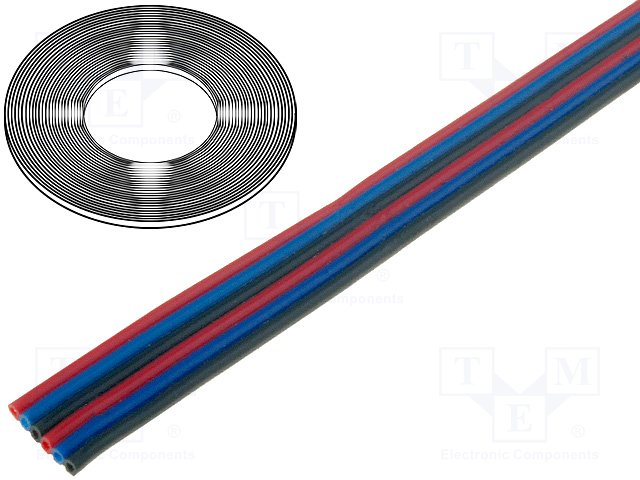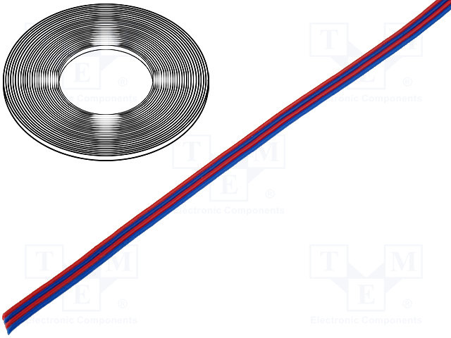 Провод: плоский; многопров; Cu; 4x0,124мм2; ПВХ; красный,синий |