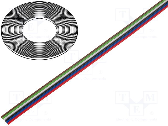 Провод ленточный; stranded; Cu; 5x0,22mm2; unshielded; PVC; 150V; 50m |