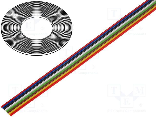 Wire: ribbon; stranded; Cu; 8x0,22mm2; unshielded; PVC; 150V; 50m |