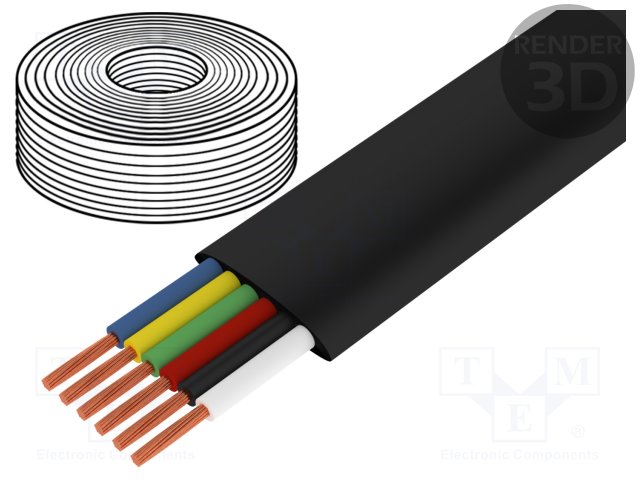Провод: телефонный; многопров; 6x28AWG; черный; 500м; Проводник: Cu