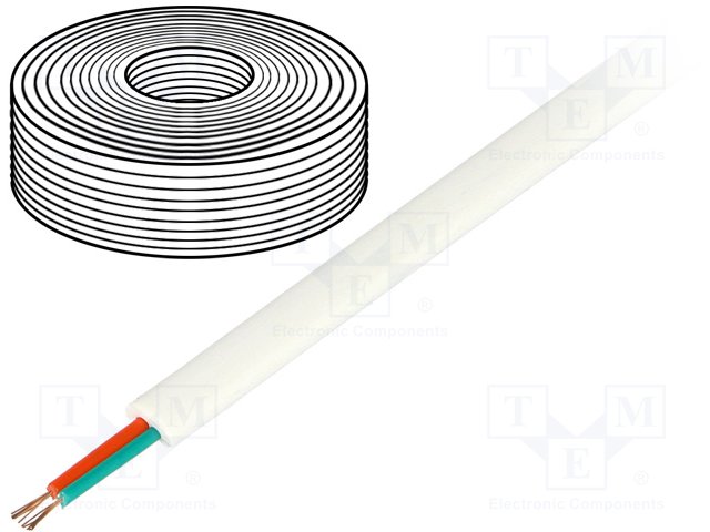 Провод: телефонный; многопров; 2x28AWG; белый; 100м; Проводник: Cu