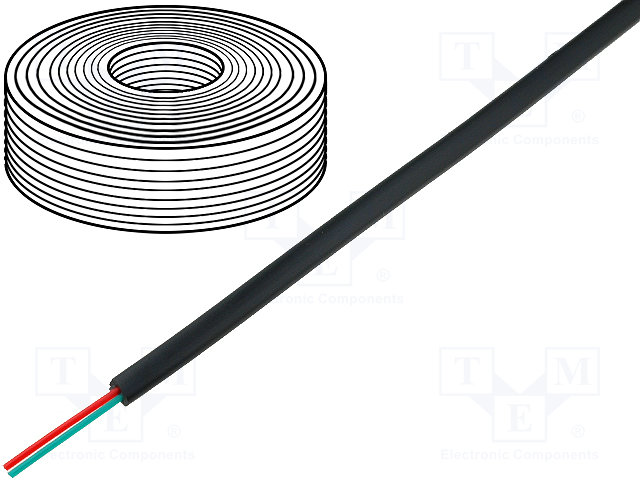 Провод: телефонный; многопров; 2x28AWG; черный; 100м; Проводник: Cu