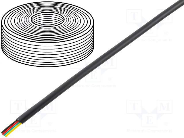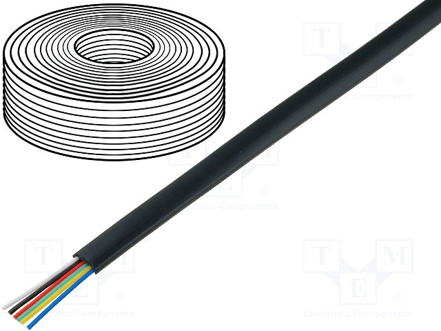 Провод: телефонный; многопров; 6x28AWG; черный; 100м; Проводник: Cu