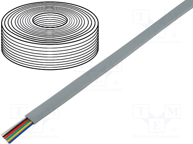 Провод: телефонный; многопров; 6x28AWG; серебристый; 100м