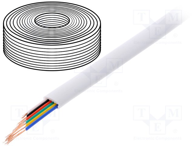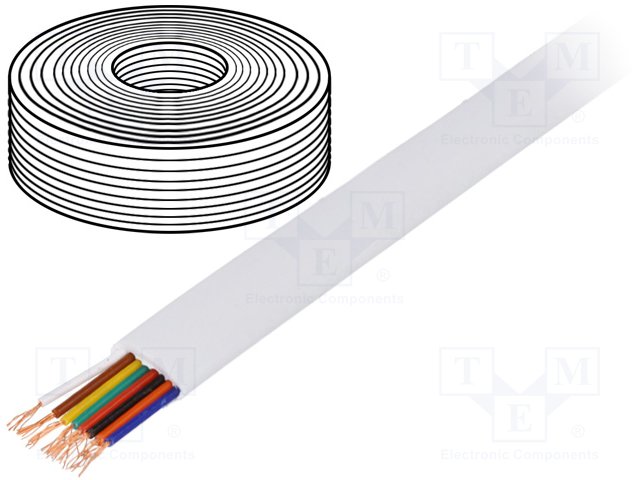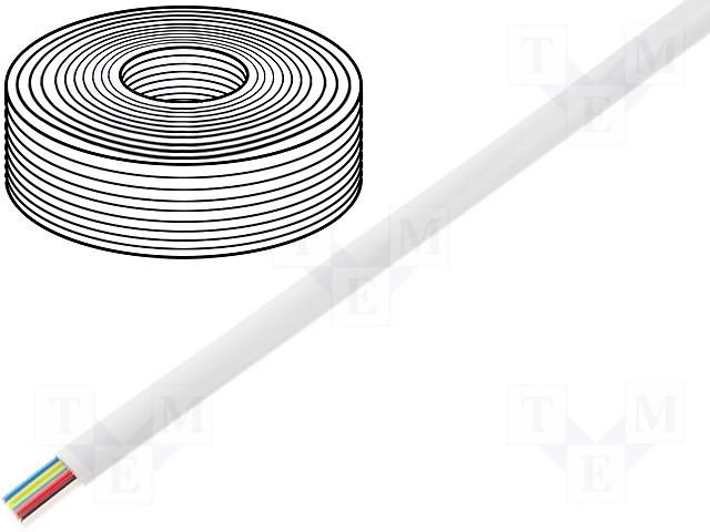 Провод: телефонный; многопров; 6x28AWG; белый; 100м; Проводник: Cu