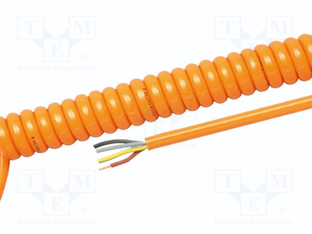 Wire: coiled; 3G1mm2; unshielded; PUR; orange; 300/500V; 0.5m; 2m |