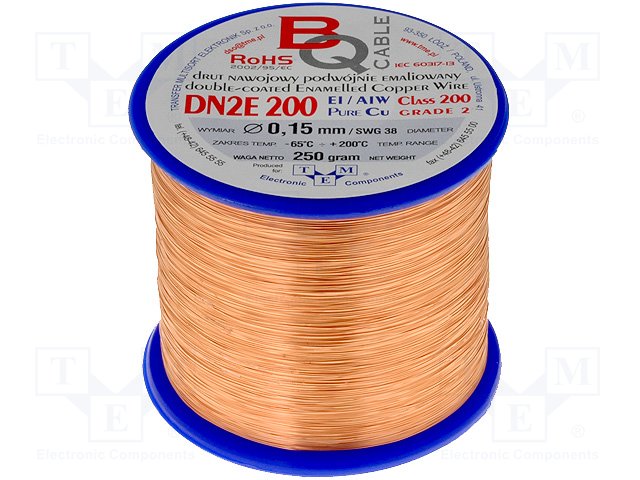 Обмоточный; эмалированный; 0,15мм; 0,5кг; -65÷200°C; Проводник: Cu