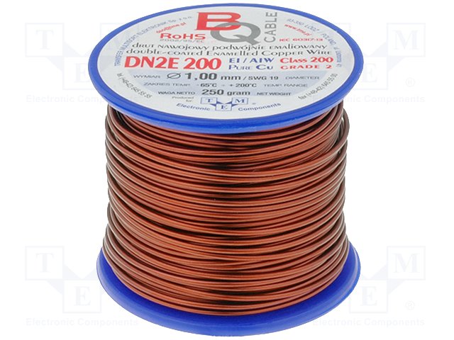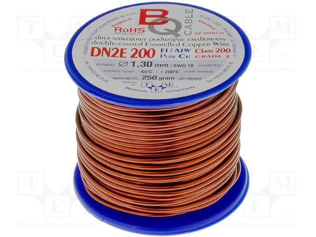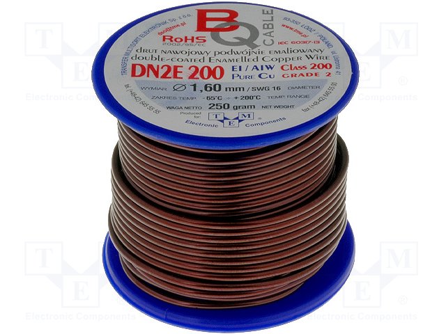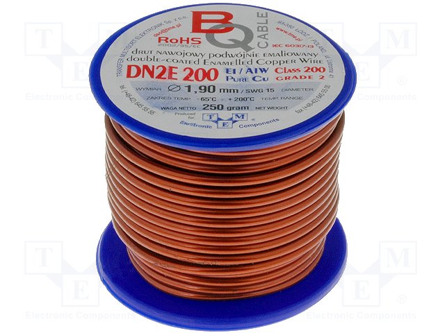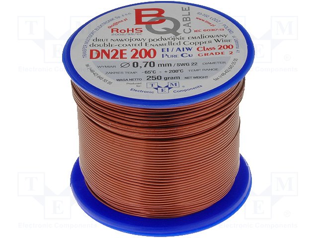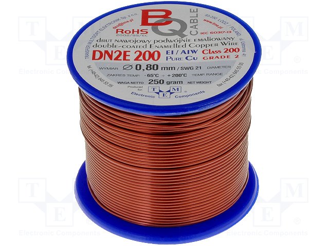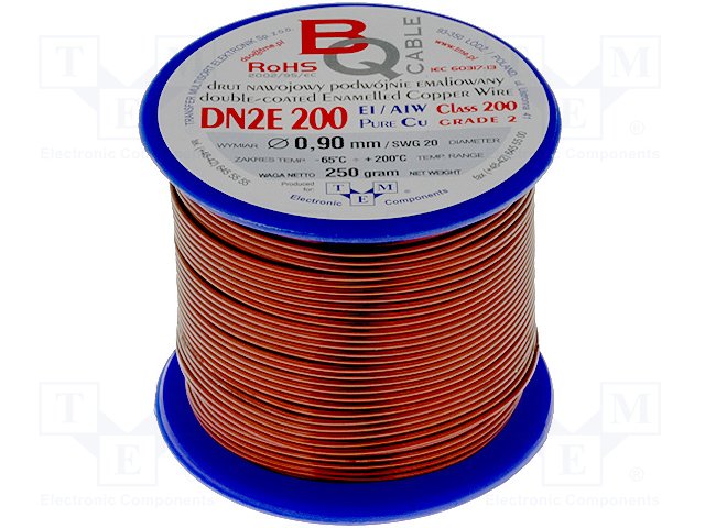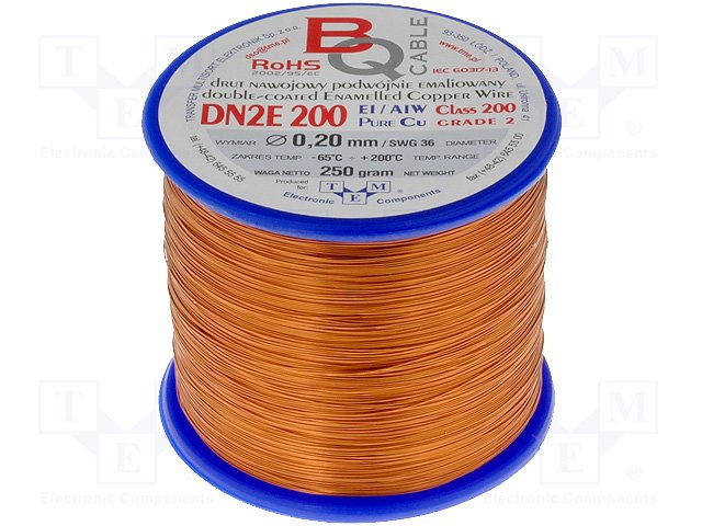 Обмоточный; эмалированный; 0,2мм; 0,25кг; -65÷200°C; Проводник: Cu