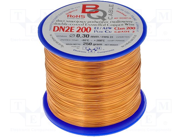 Обмоточный; эмалированный; 0,3мм; 0,25кг; -65÷200°C; Проводник: Cu