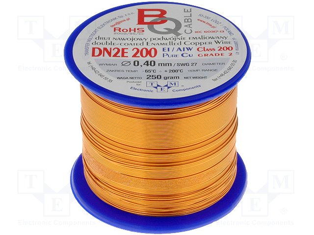 Обмоточный; эмалированный; 0,4мм; 0,25кг; -65÷200°C; Проводник: Cu