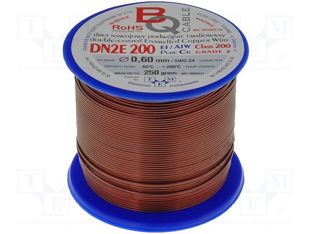 Обмоточный; эмалированный; 0,6мм; 0,25кг; -65÷200°C; Проводник: Cu
