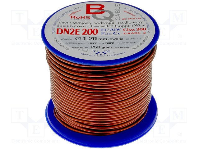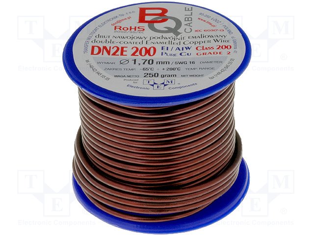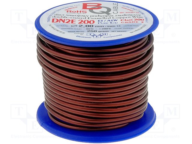 Обмоточный; эмалированный; 0,2мм; 0,5кг; -65÷200°C; Проводник: Cu