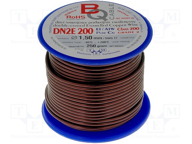 Обмоточный; эмалированный; 0,5мм; 1кг; макс.180°C; Проводник: Cu