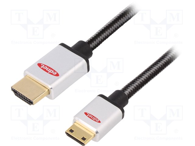 Кабель; HDMI 1.4; вилка mini HDMI,вилка HDMI; 2м; серо-черный