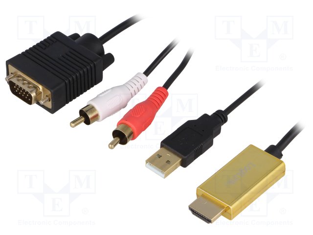 Кабель; D-Sub 15pin HD вилка,гнездо HDMI,вилка USB A; черный