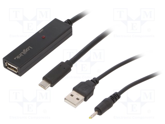 Репитер USB; USB 2.0; гнездо USB A,вилка USB C; 15м; черный