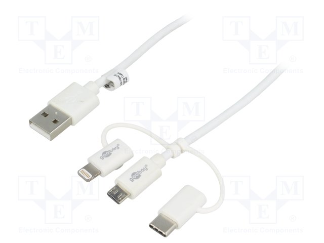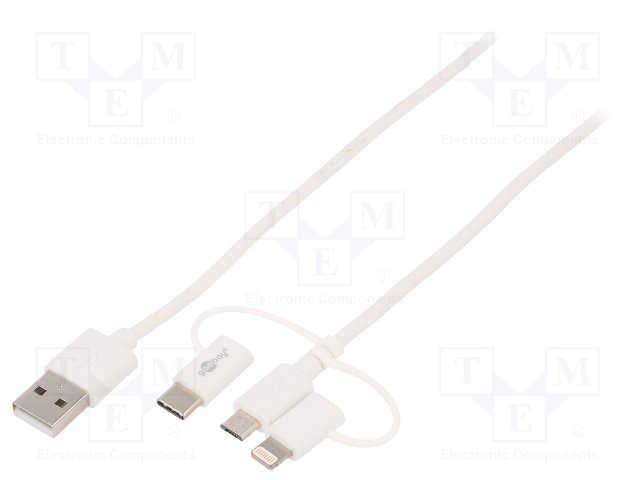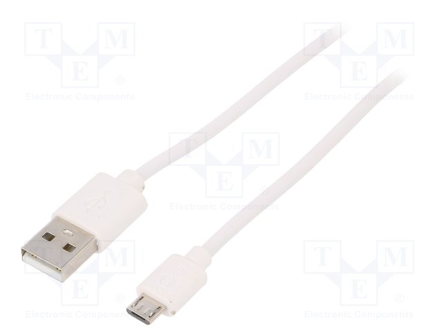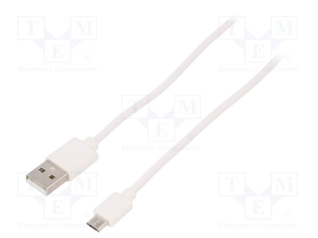Кабель; USB 2.0; вилка USB A,вилка micro USB B; 1м; белый
