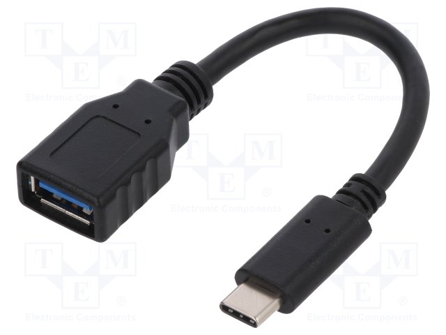 Кабель; USB 3.0; гнездо USB A,вилка USB C; 100мм; черный