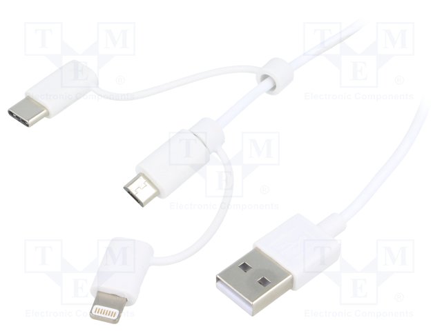 Кабель; вилка USB A,вилка micro USB B,вилка Apple Lightning