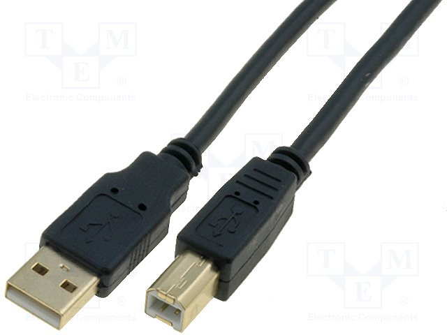 Кабель; USB 2.0; вилка USB A,вилка USB B; позолота; 3м; черный