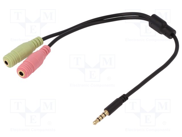 Кабель; Jack 3,5мм 4pin вилка,Jack 3,5мм 3pin гнездо x2; 150мм
