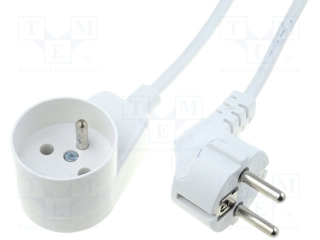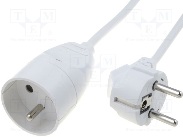 Сетевой удлинитель; Гнезда: 2; ПВХ; белый; 3x1мм2; 5м; 10А |