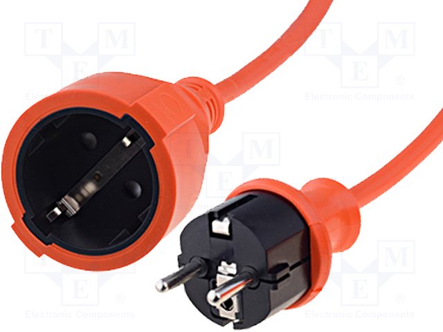 Сетевой удлинитель; Schuko; Гнезда: 1; ПВХ; оранжевый; 3x1,5мм2 |
