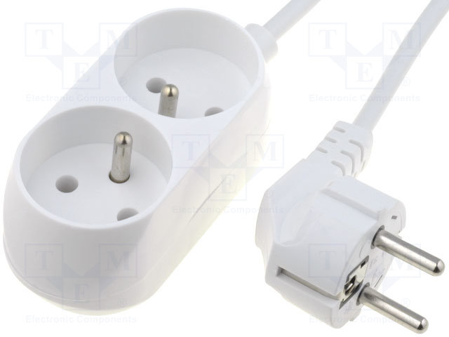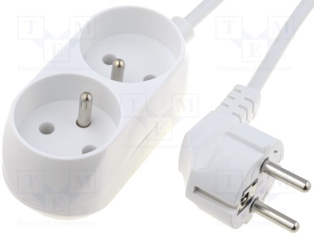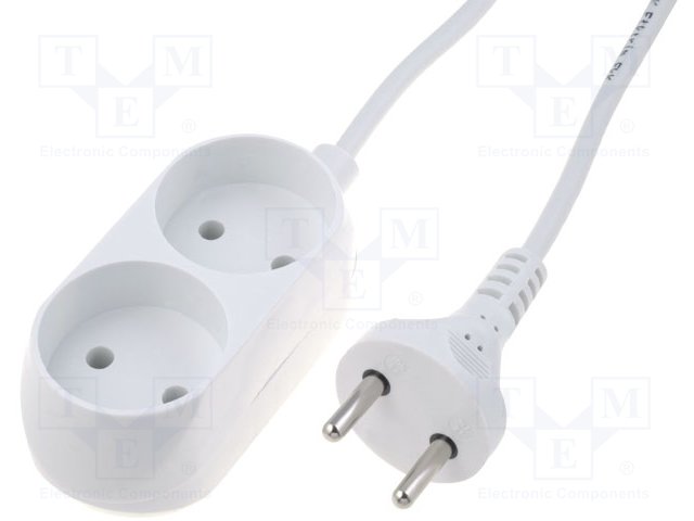Сетевой удлинитель; Гнезда: 2; ПВХ; белый; 3x1мм2; 3м; 10А |