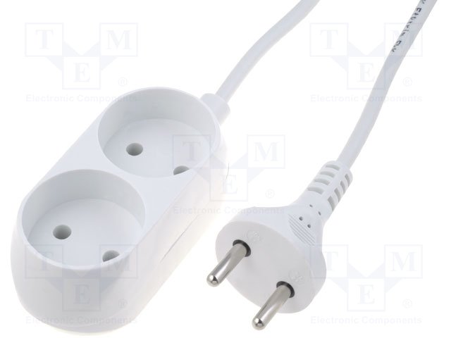 Сетевой удлинитель; Гнезда: 2; ПВХ; белый; 2x1мм2; 3м; 10А |