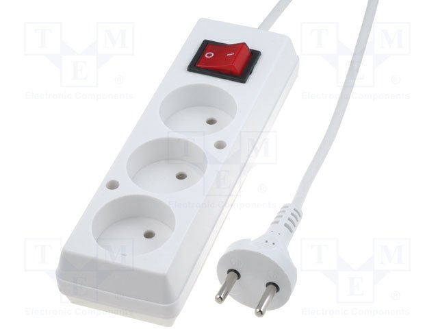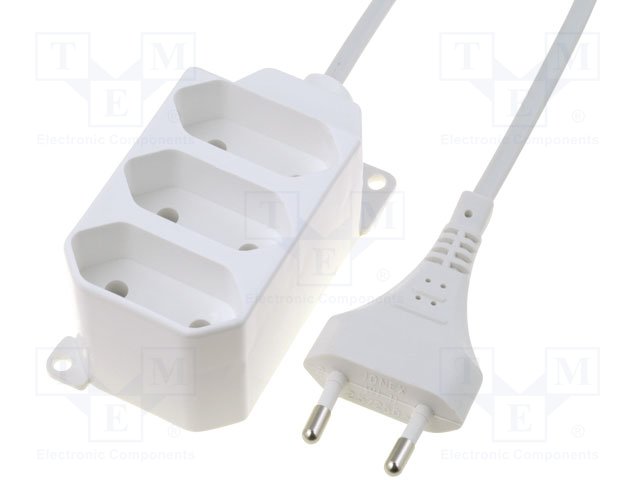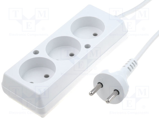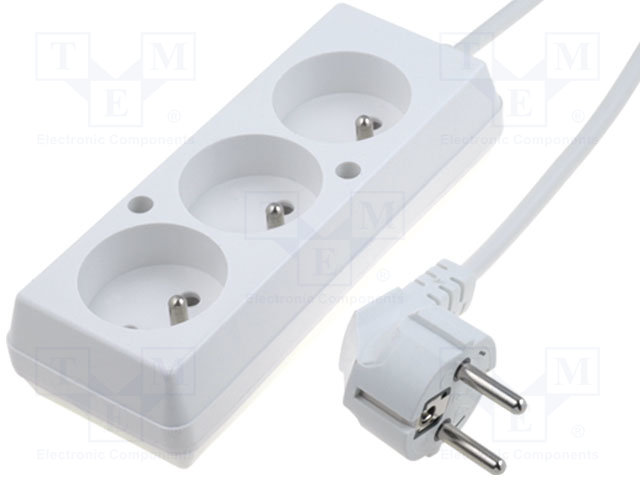 Сетевой удлинитель; Гнезда: 3; ПВХ; белый; 2x0,75мм2; 3м; 2,5А |