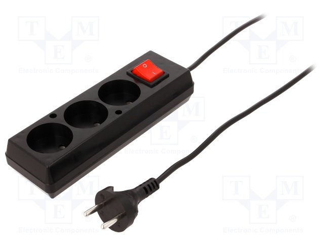 Сетевой удлинитель; Гнезда: 3; ПВХ; черный; 2x1мм2; 3м; 10А |