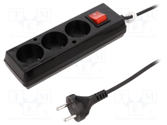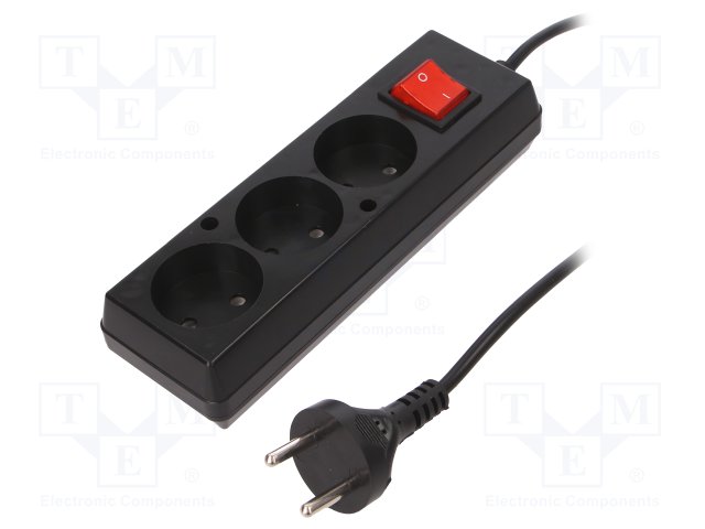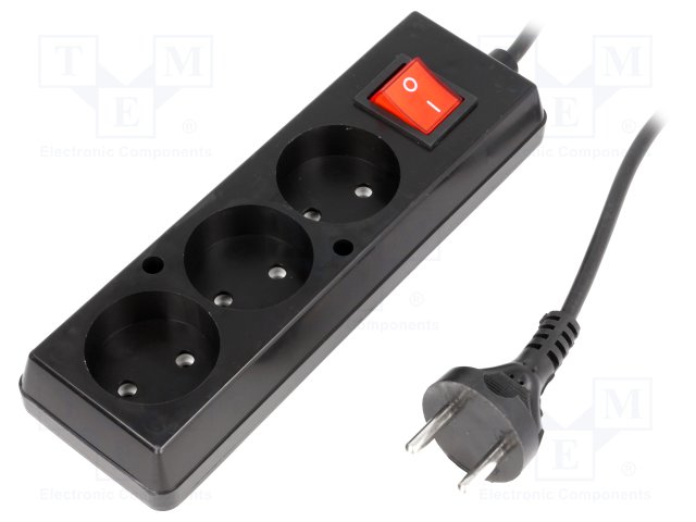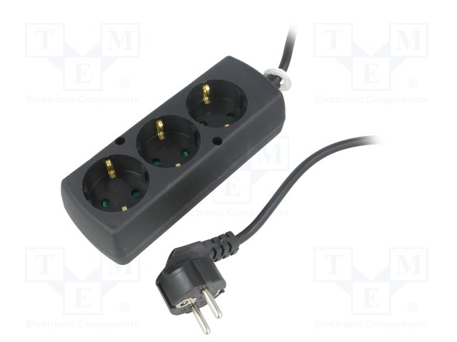 Сетевой удлинитель; Schuko; Гнезда: 3; ПВХ; черный; 3x1мм2; 10А |