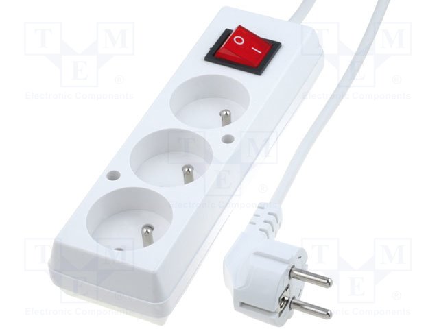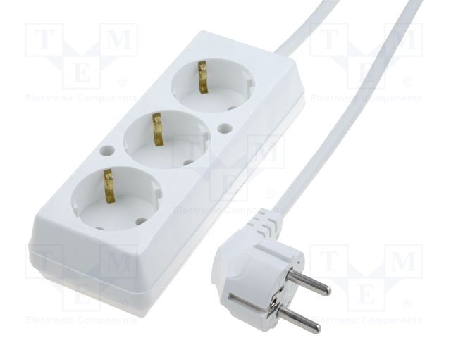 Сетевой удлинитель; Schuko; Гнезда: 3; ПВХ; белый; 3x1мм2; 10А |