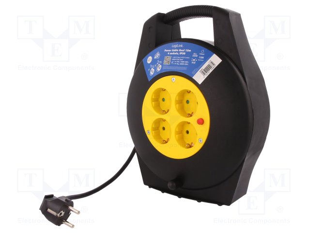 Сетевой удлинитель; на катушке; Гнезда: 4; черный; 15м; 14А