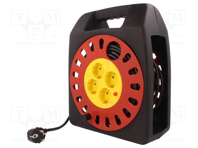 Сетевой удлинитель; на катушке; Гнезда: 4; черный; 25м; 13,9А